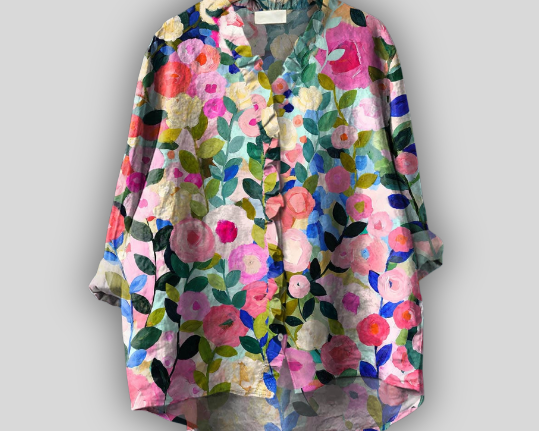 Květinová lněná blůza
