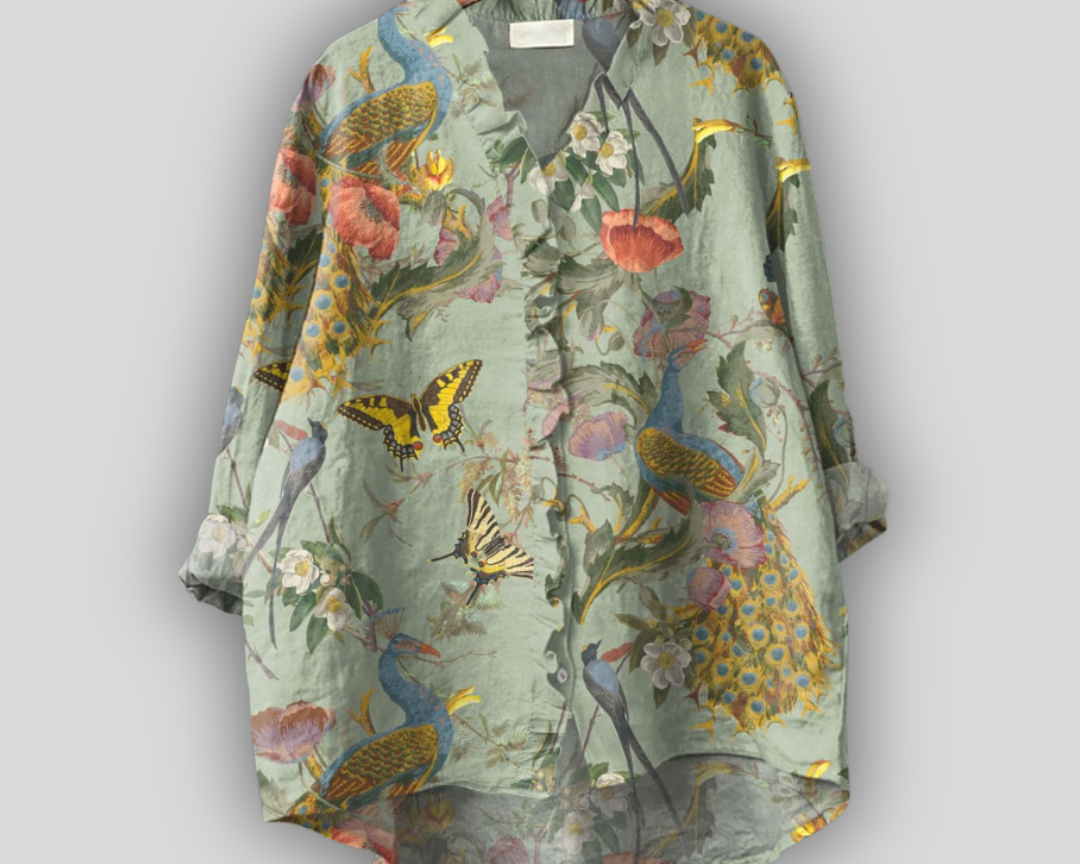 Lněná blůza „Zahrada pávů“