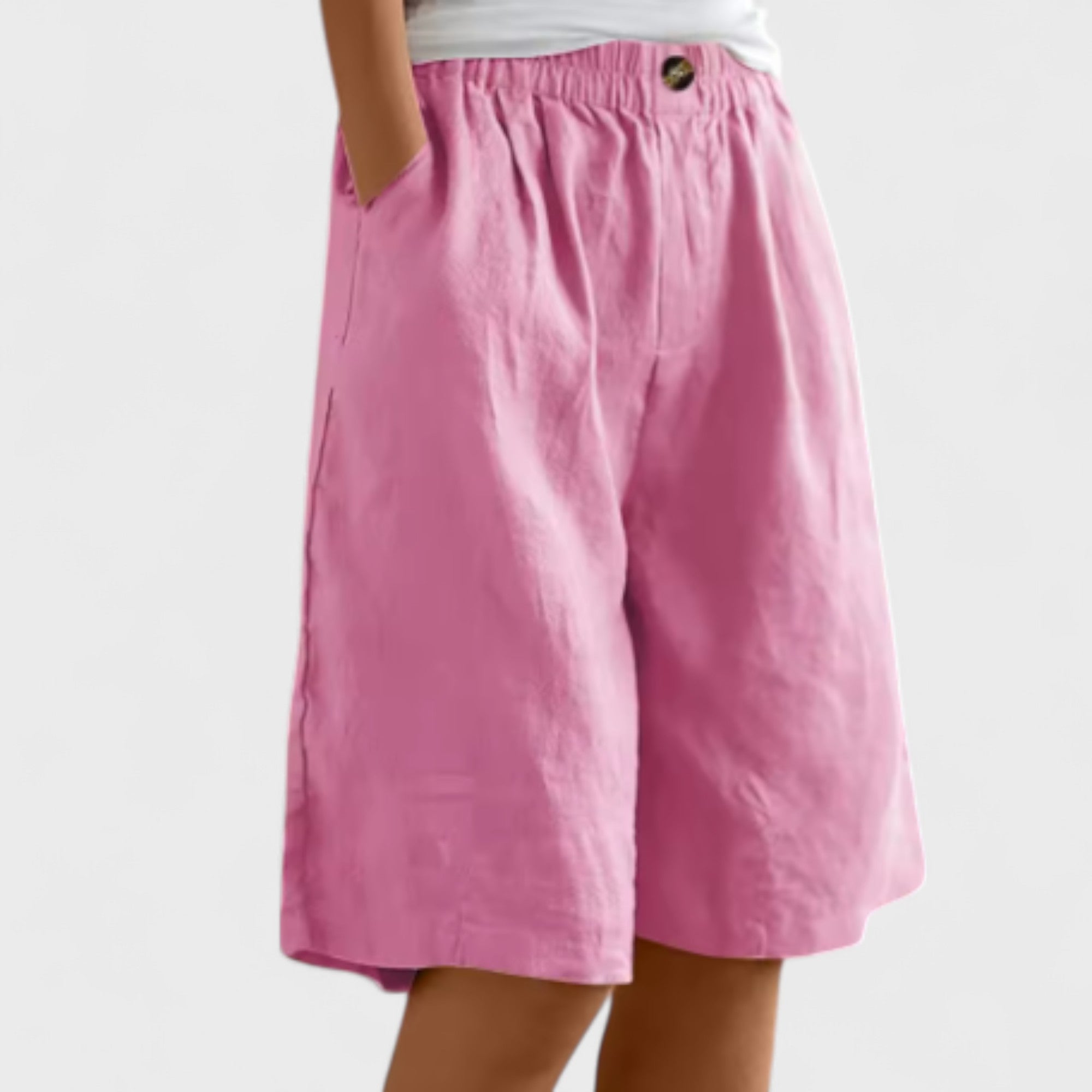 Šortky Šárka kombinují ležérní eleganci s neuvěřitelným pohodlím. Díky volnému střihu, příjemnému materiálu a elastickému pasu je unošíš doma, na procházkách i na letní dovolené. Funkční kapsy a nadčasový design z nichž dělají nepostradatelný kusek pro každou moderní ženu.
