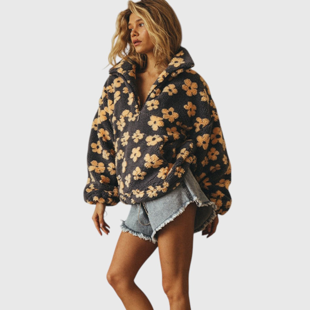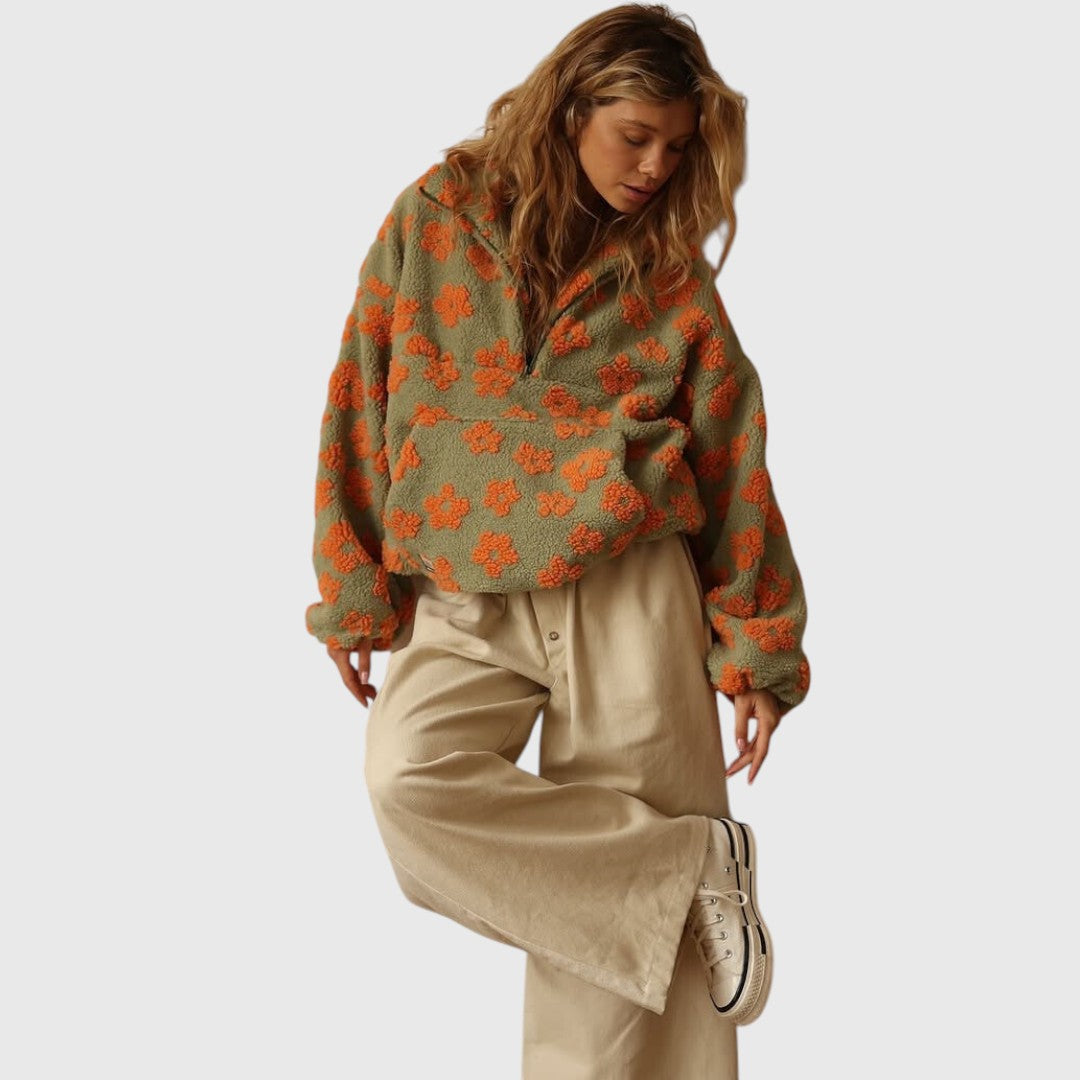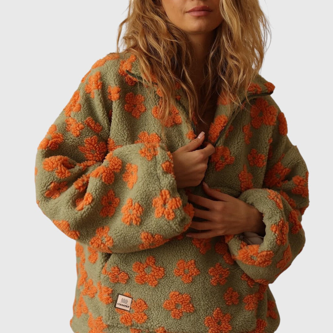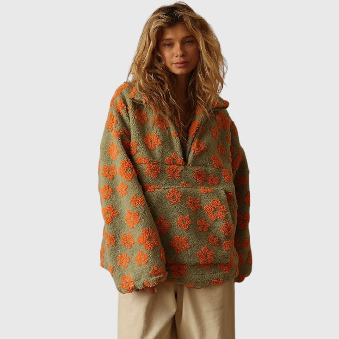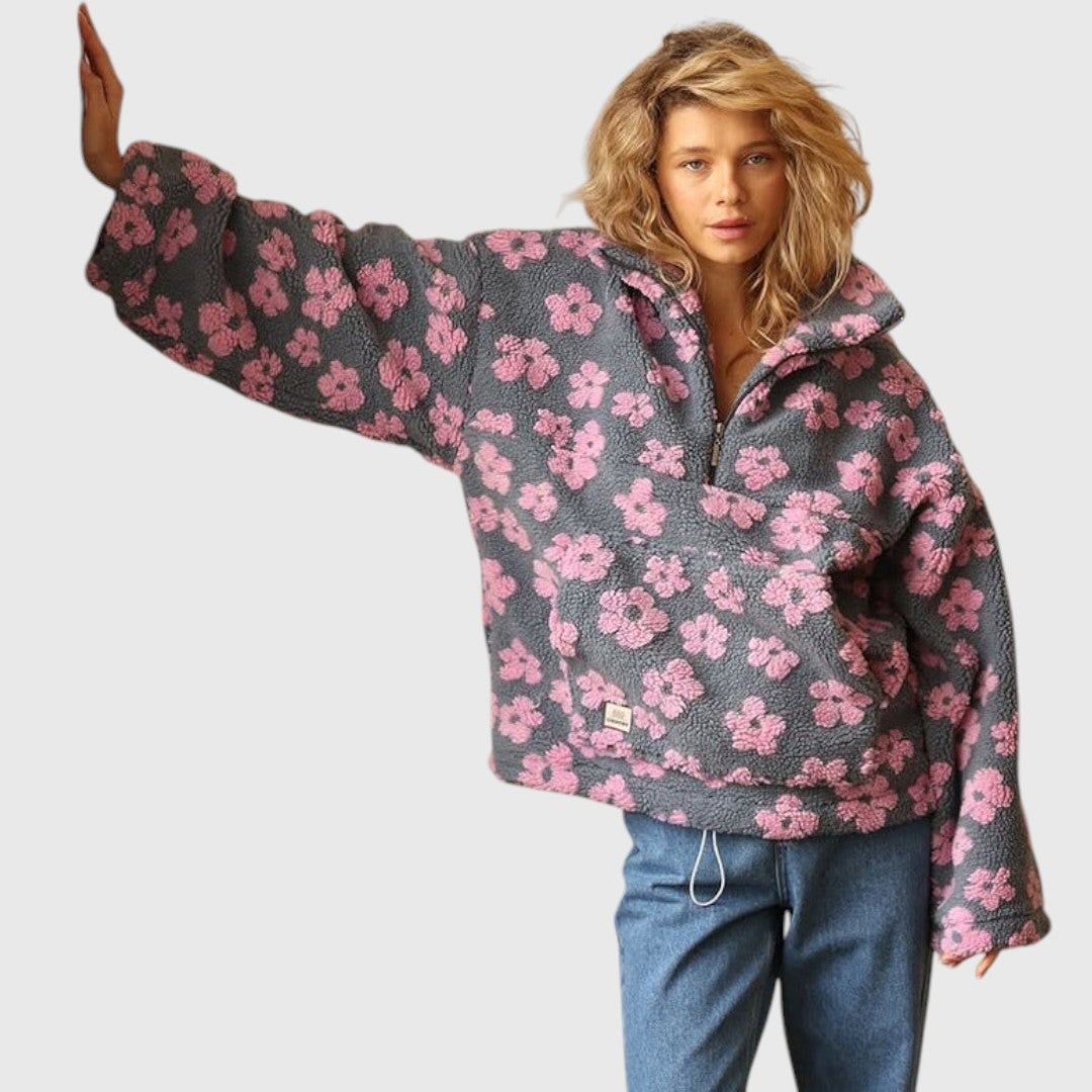 Květinové detailní inspirované boho dodávají hravý a stylový nádech, mírně oversized střih vyžaduje uvolněný a pohodlný vzhled. Ať už si užíváte kávovou přestávku ve městě nebo klidný večer na gauči, tenta fleece kombinuje teplo s osobností.