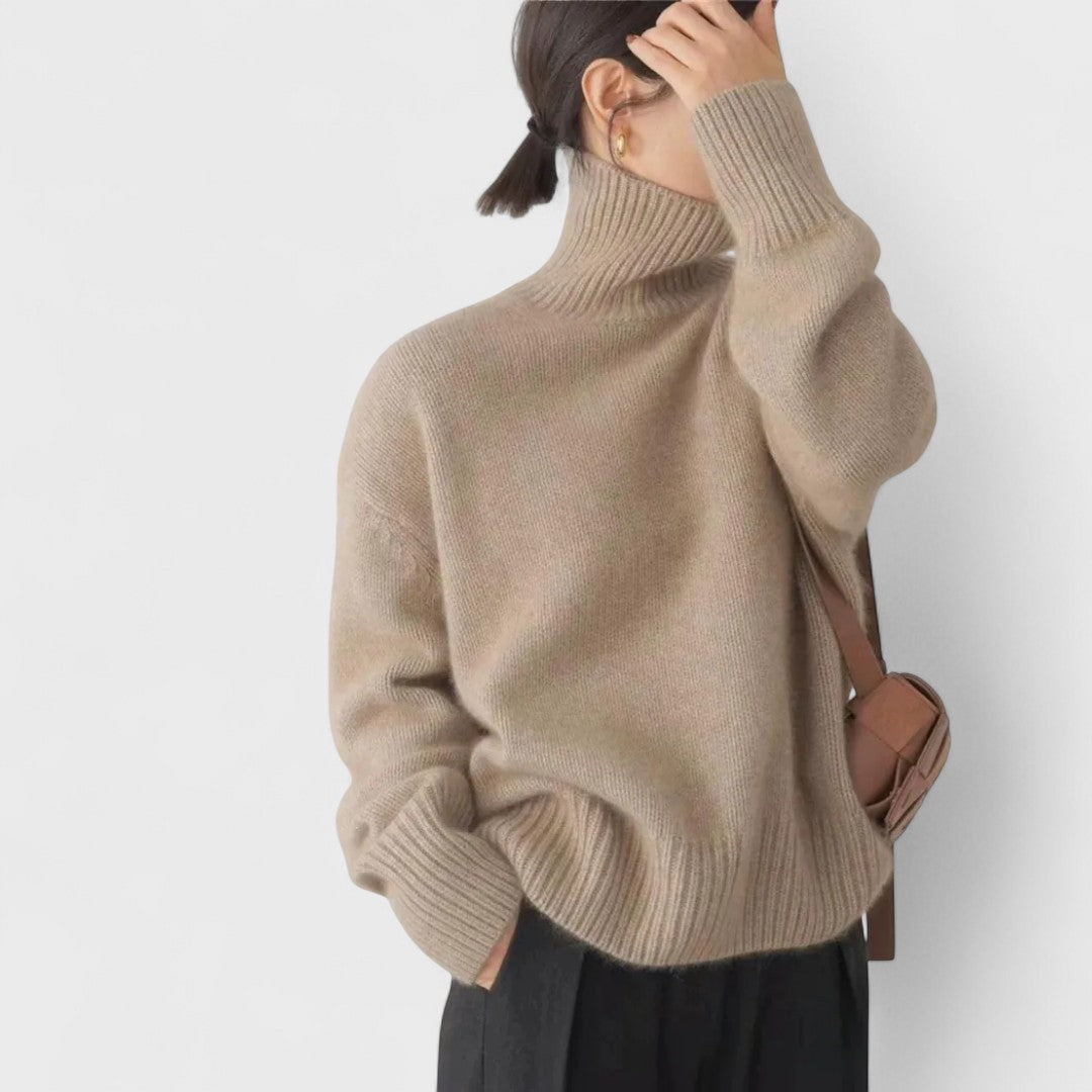 Svetr Isabella je dokonalým kouskem pro ty, kteří hledají eleganci v pohodlí. Je vyroben z čistého kašmíru, což mu dodává luxusní vzhled a pocit. Jeho vysoký límec a dokonalý střih se snadno klasicky kombinují s různými střihy, ať už pro ležérní nebo formální příležitosti. Svou jemností a hřejivostí se stane tvým nejoblíbenějším společníkem v chladných dnech.