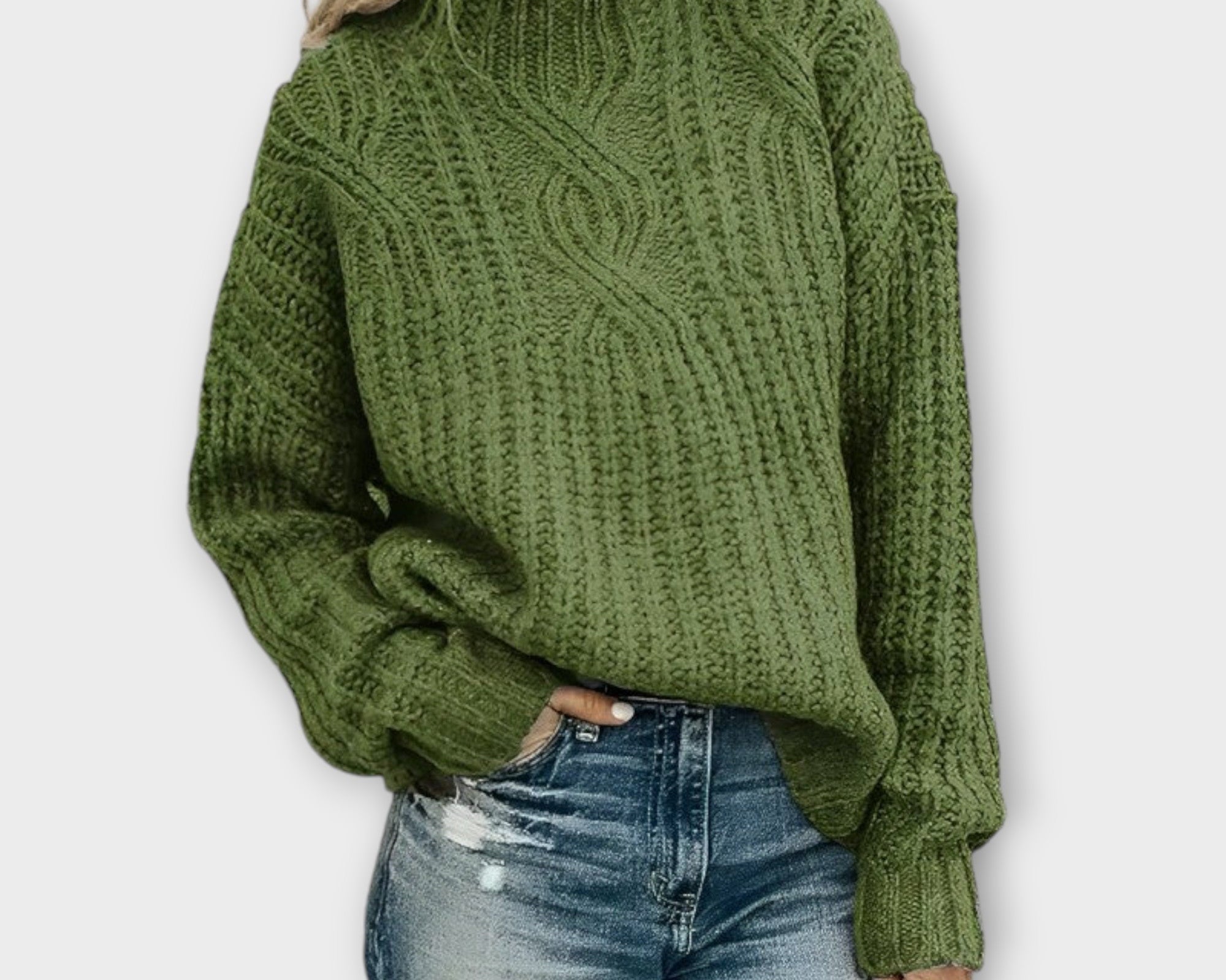 Christine - Luxusní olivově zelený pletený svetr