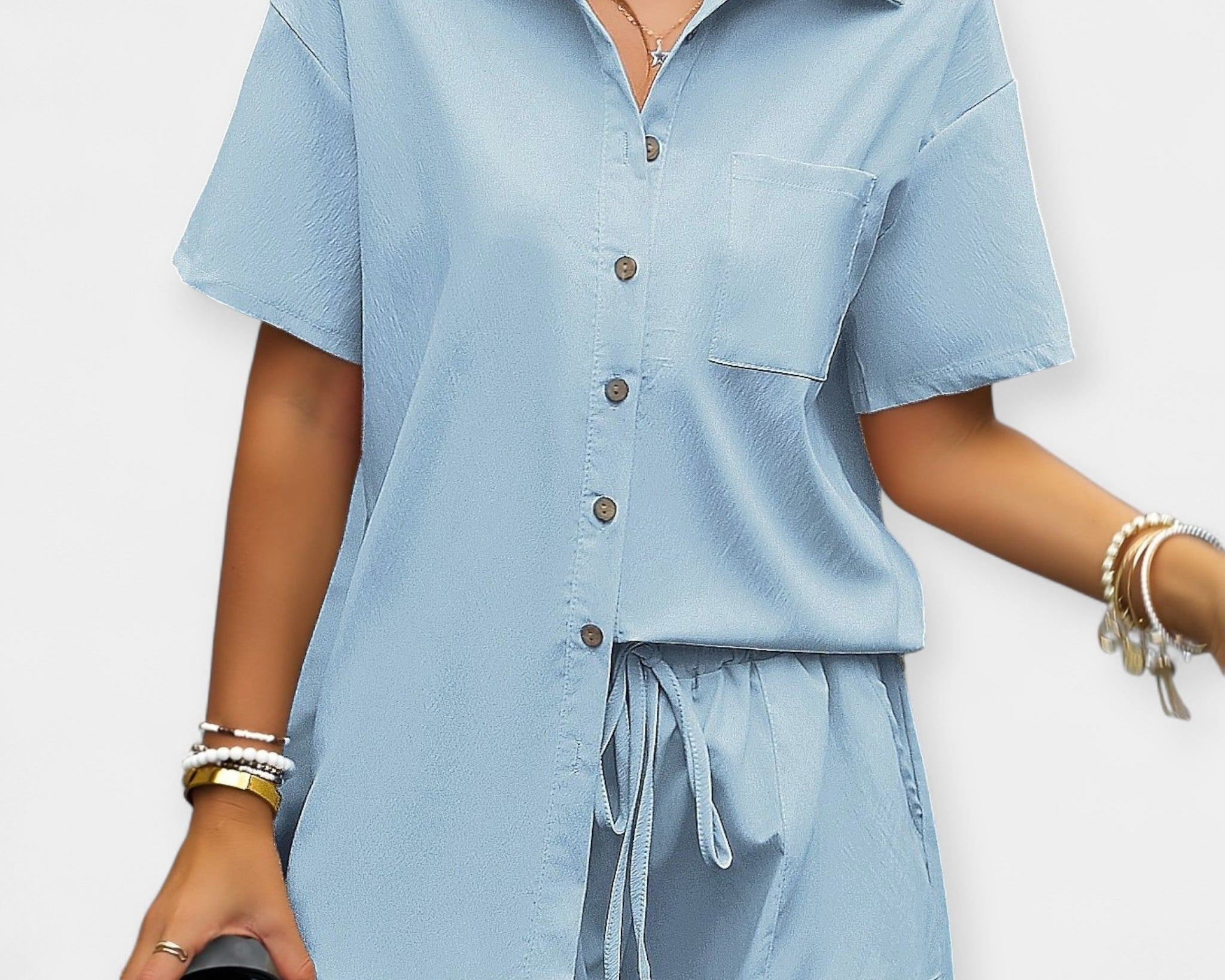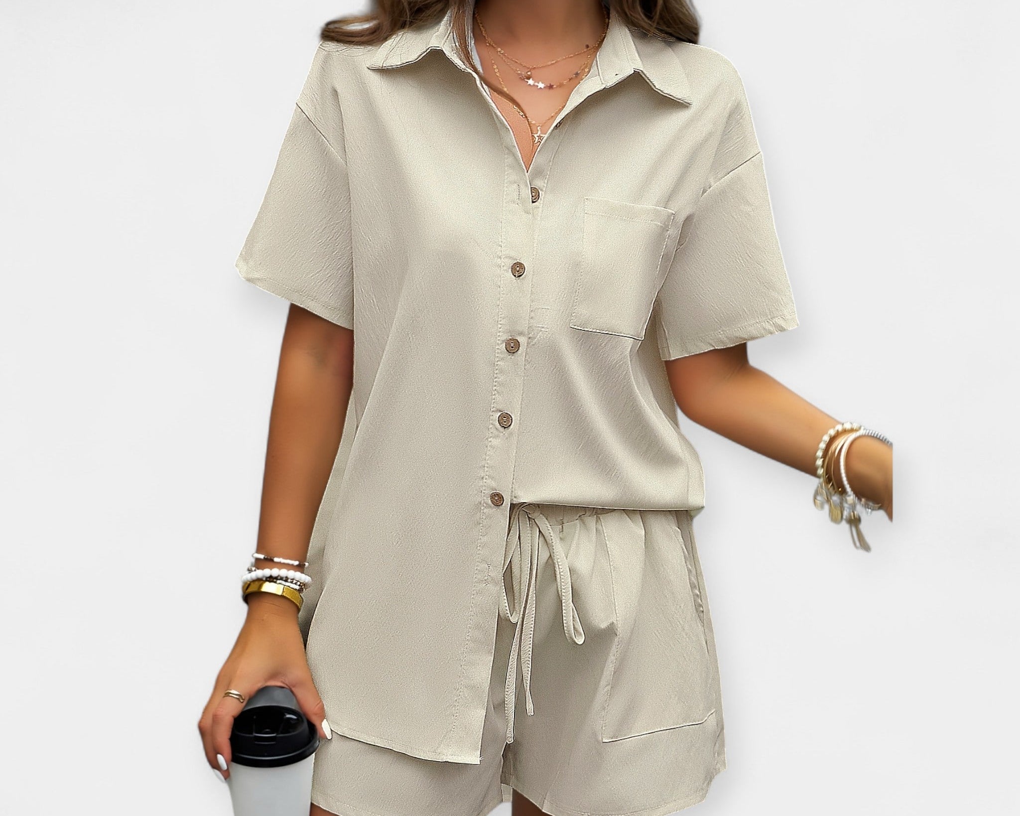 Pohodlná souprava s košilí a šortkami