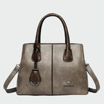 Elegantní lámská taška v černé barvě s hnědými detailními v hadím vzoru, které dodávají luxusní charakter a výjimečný styl. Prostorný vnitřní prostor je ideální pro všechny každodenní potřeby, zatímco odnímatelný ramenní popruh poskytuje flexibilitu při nošení. Doplněk, který kombinuje praktičnost a nadčasovou eleganci.