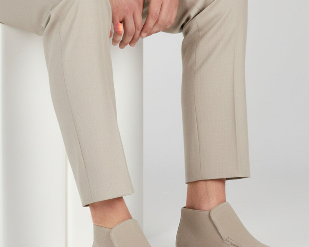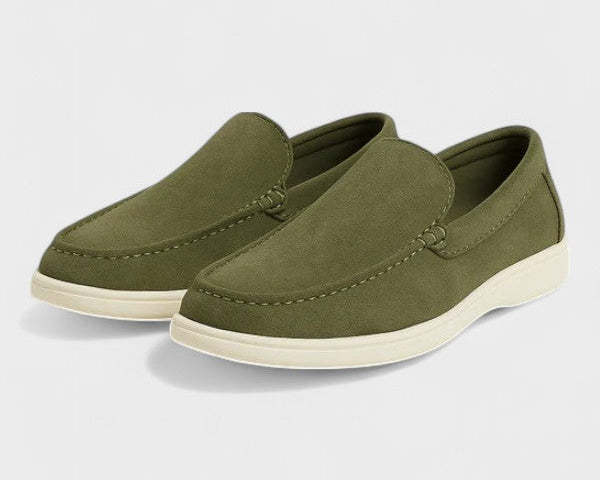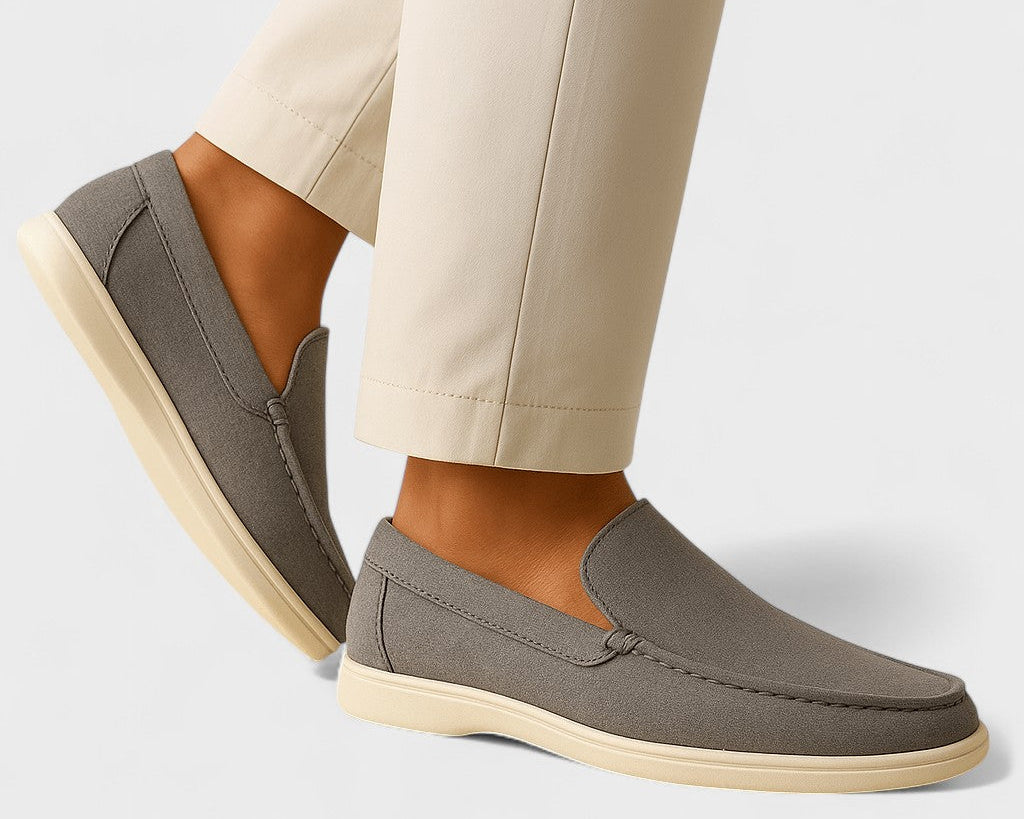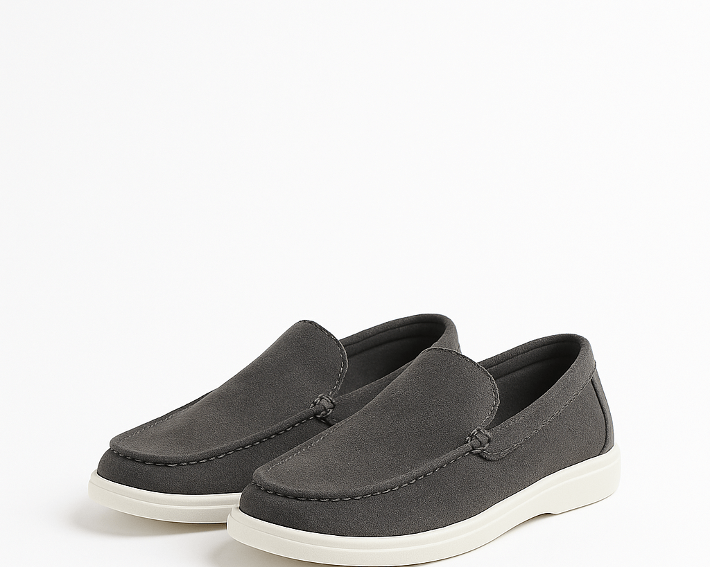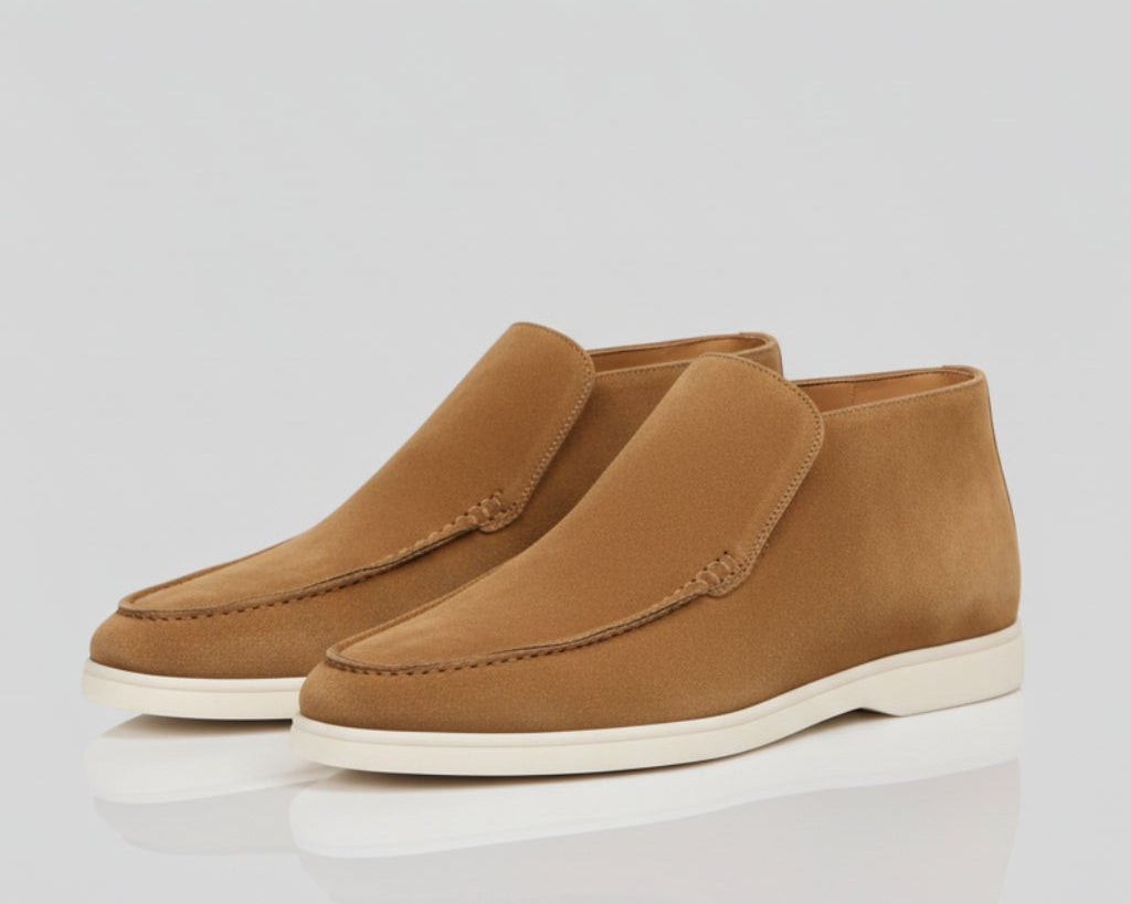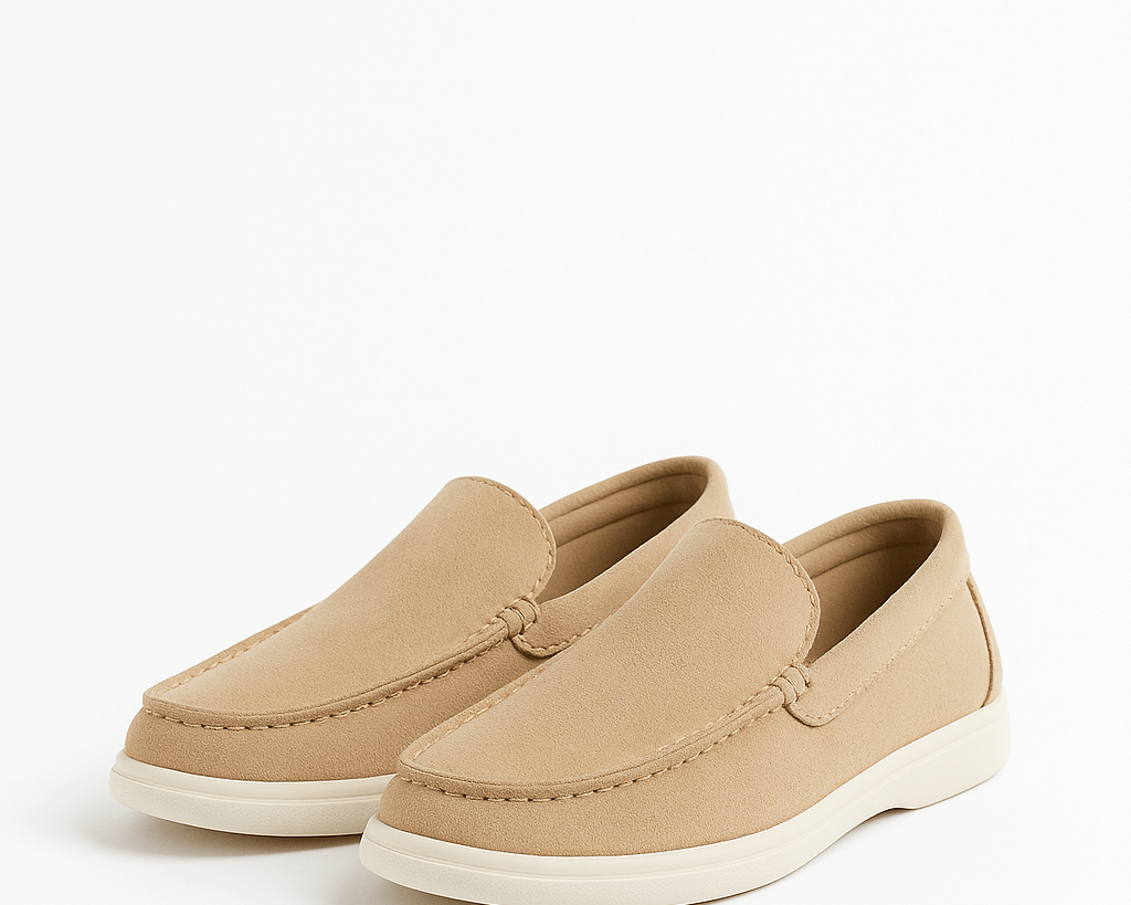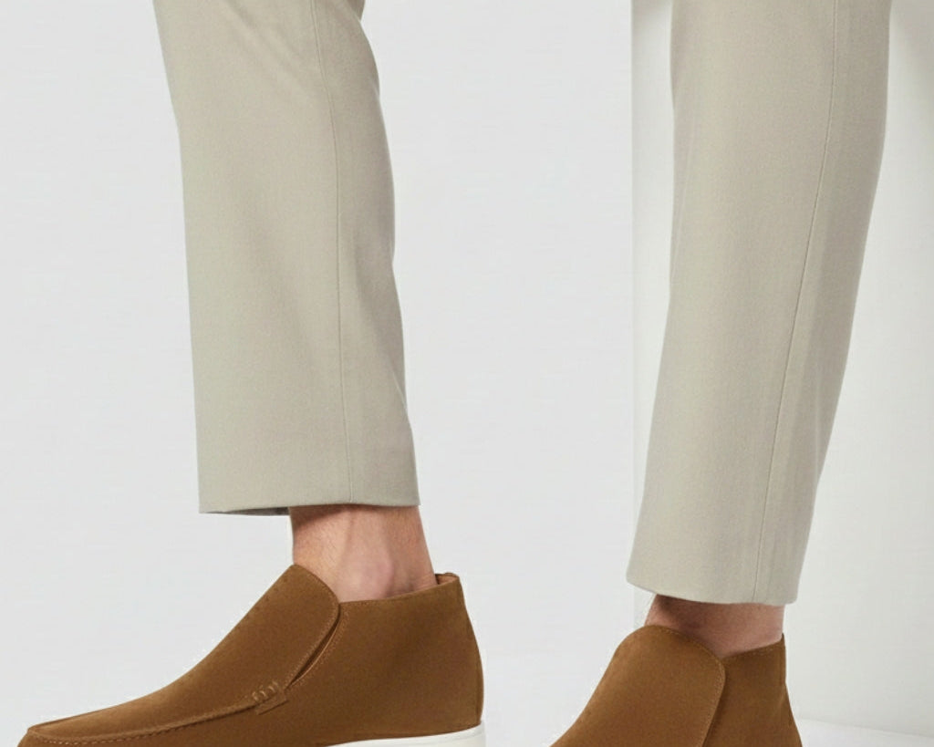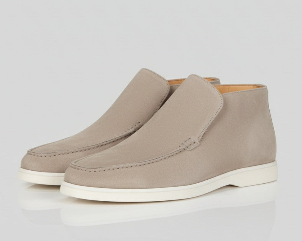 Pánské semišové loafers boty – Slip-On Chukka styl, plochý podpatek – Greige