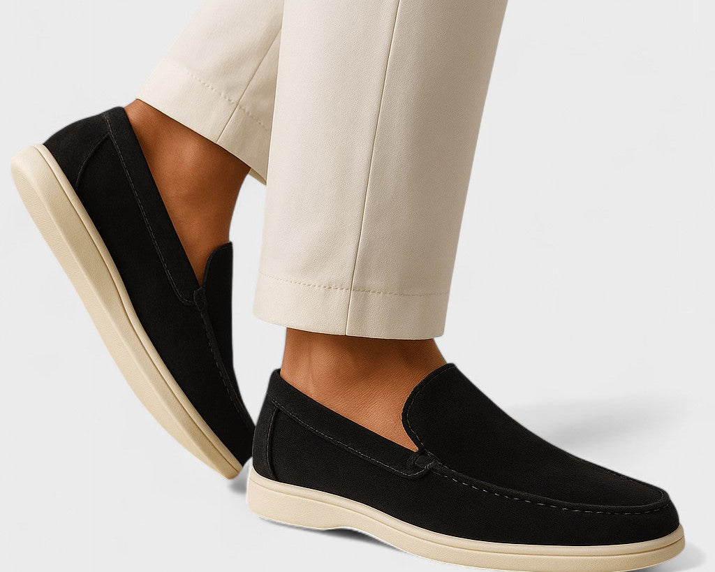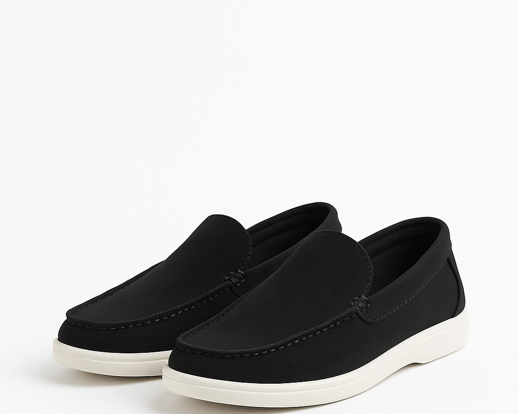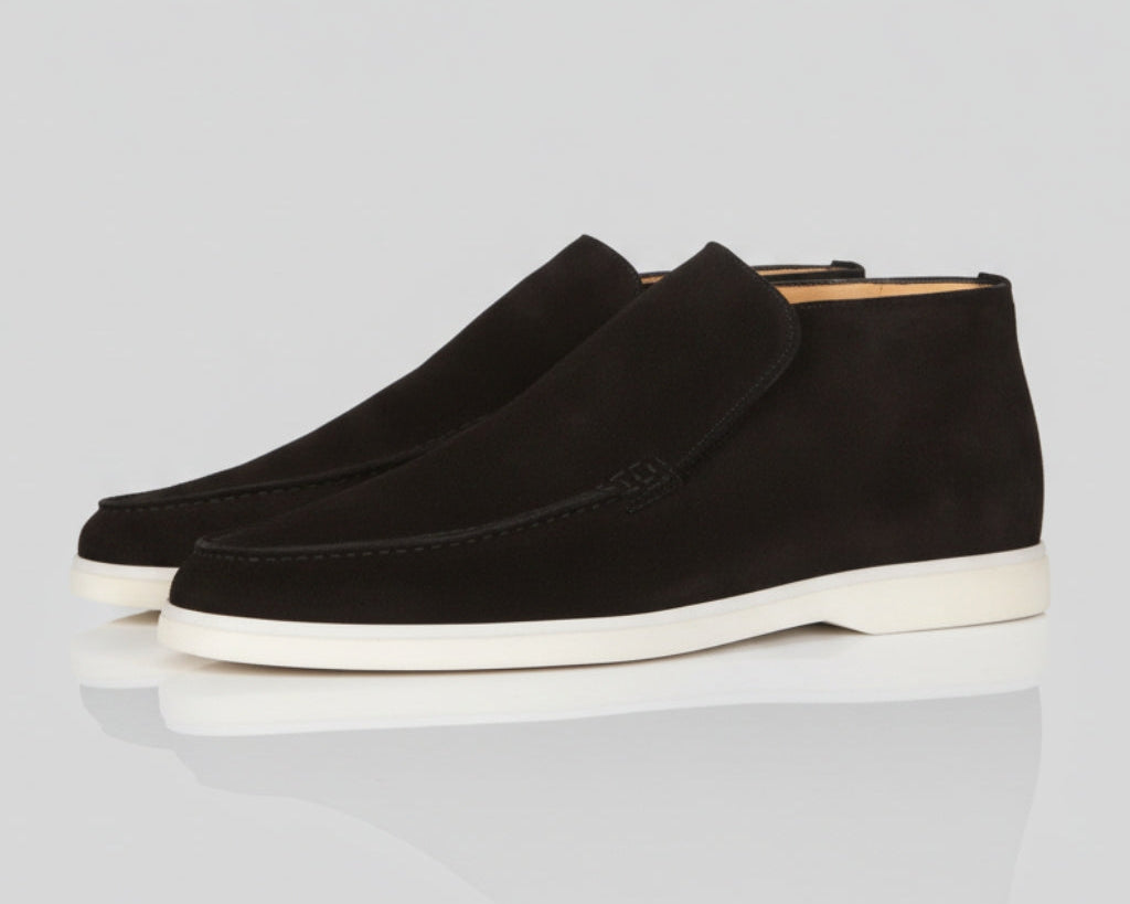 Pánské semišové loafers boty – Slip-On Chukka styl, plochý podpatek – Černé