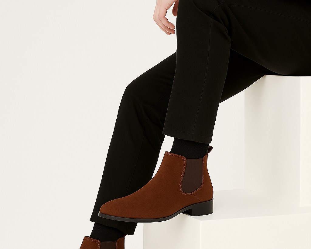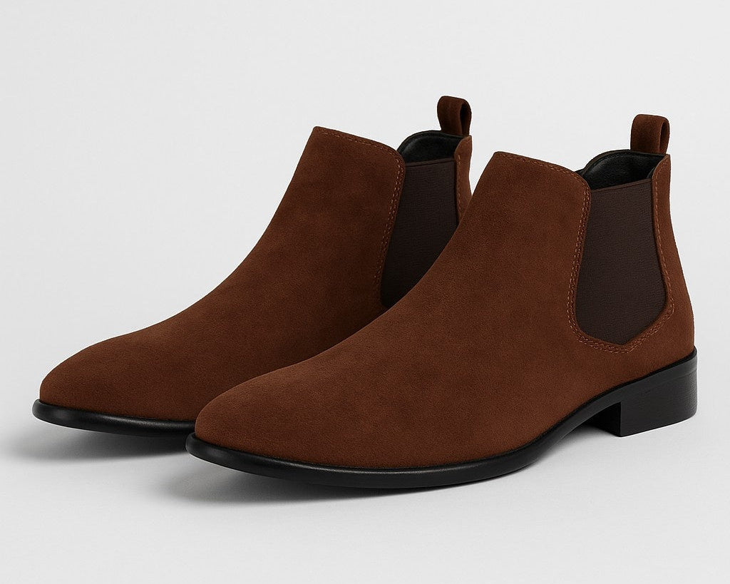 Minimalistické Slip-On Chelsea Boty – Hnědý Vzhled Semiše, Elastické Boční Panely, Plochý Podpatěk