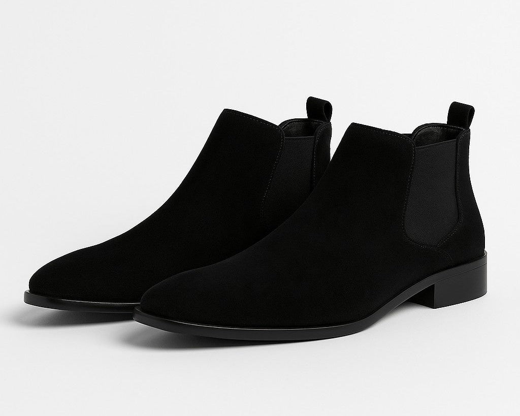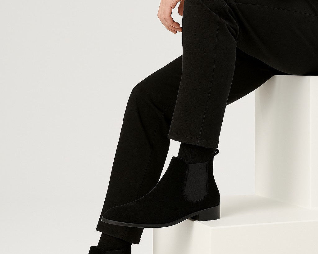 Minimalistické Slip-On Chelsea Boty – Černý Vzhled Z Semiše, Elastické Boční Panely, Plná Podpatka