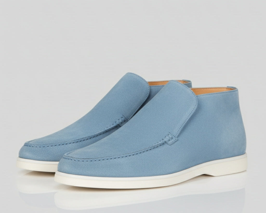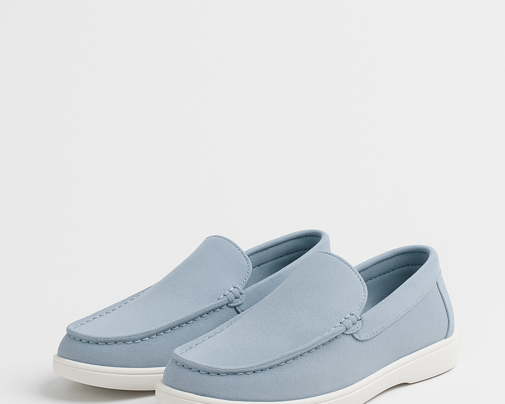 Pánské semišové loafery – Slip-On Chukka style, plochý podpatek – Světle modré