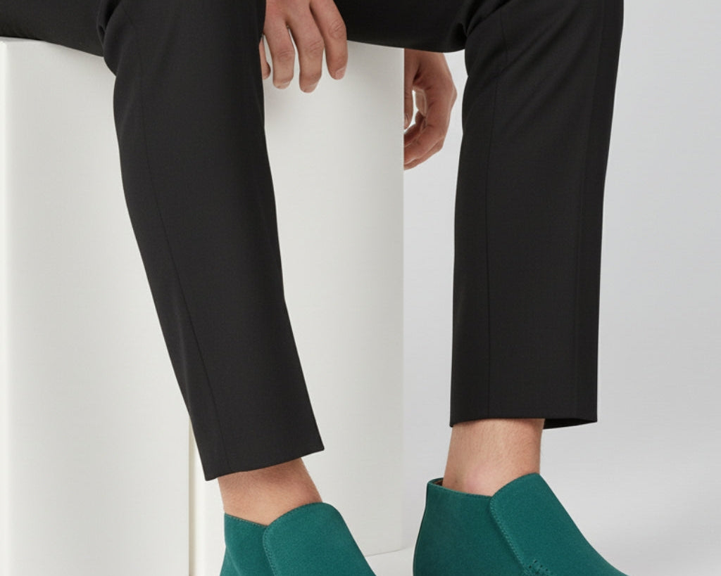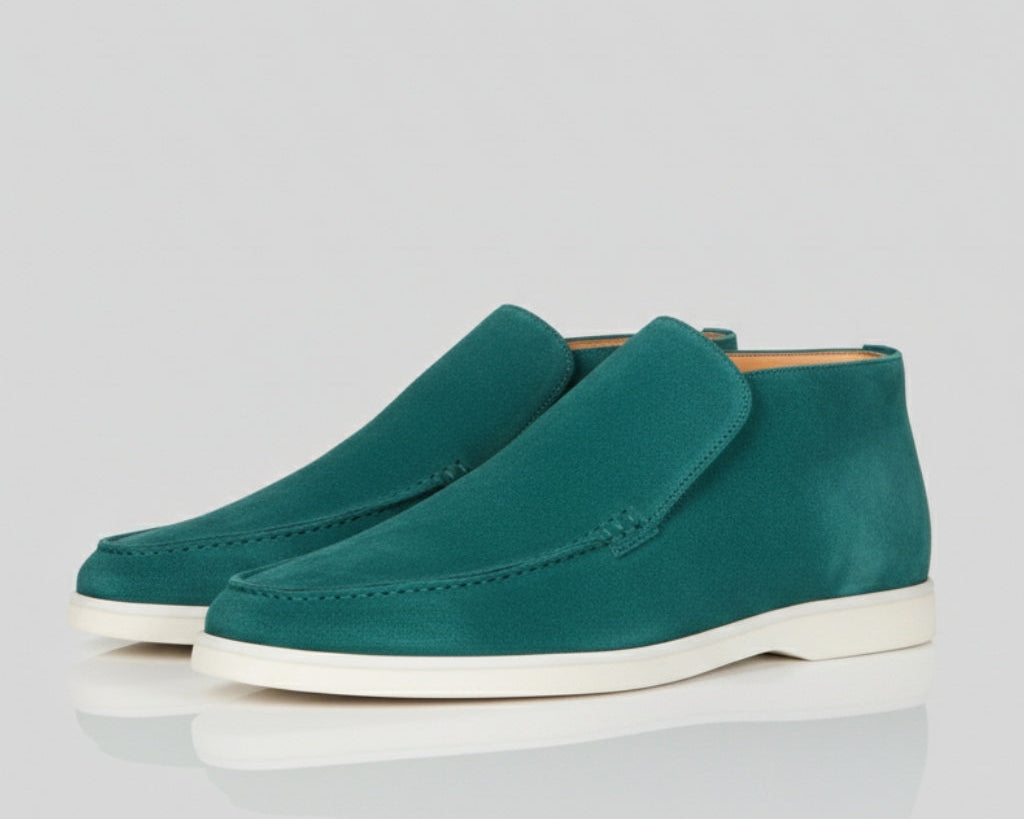 Pánské semišové loafers boty – Slip-On Chukka styl, plochý podpatek – Modrozelená