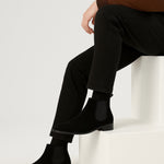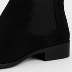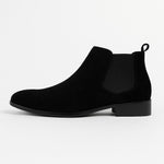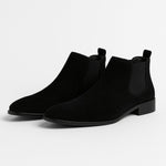 Minimalistické Slip-On Chelsea Boty – Černý Vzhled Z Semiše, Elastické Boční Panely, Plná Podpatka