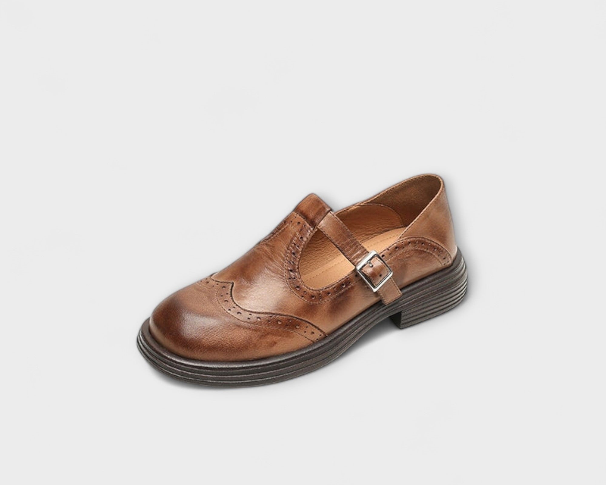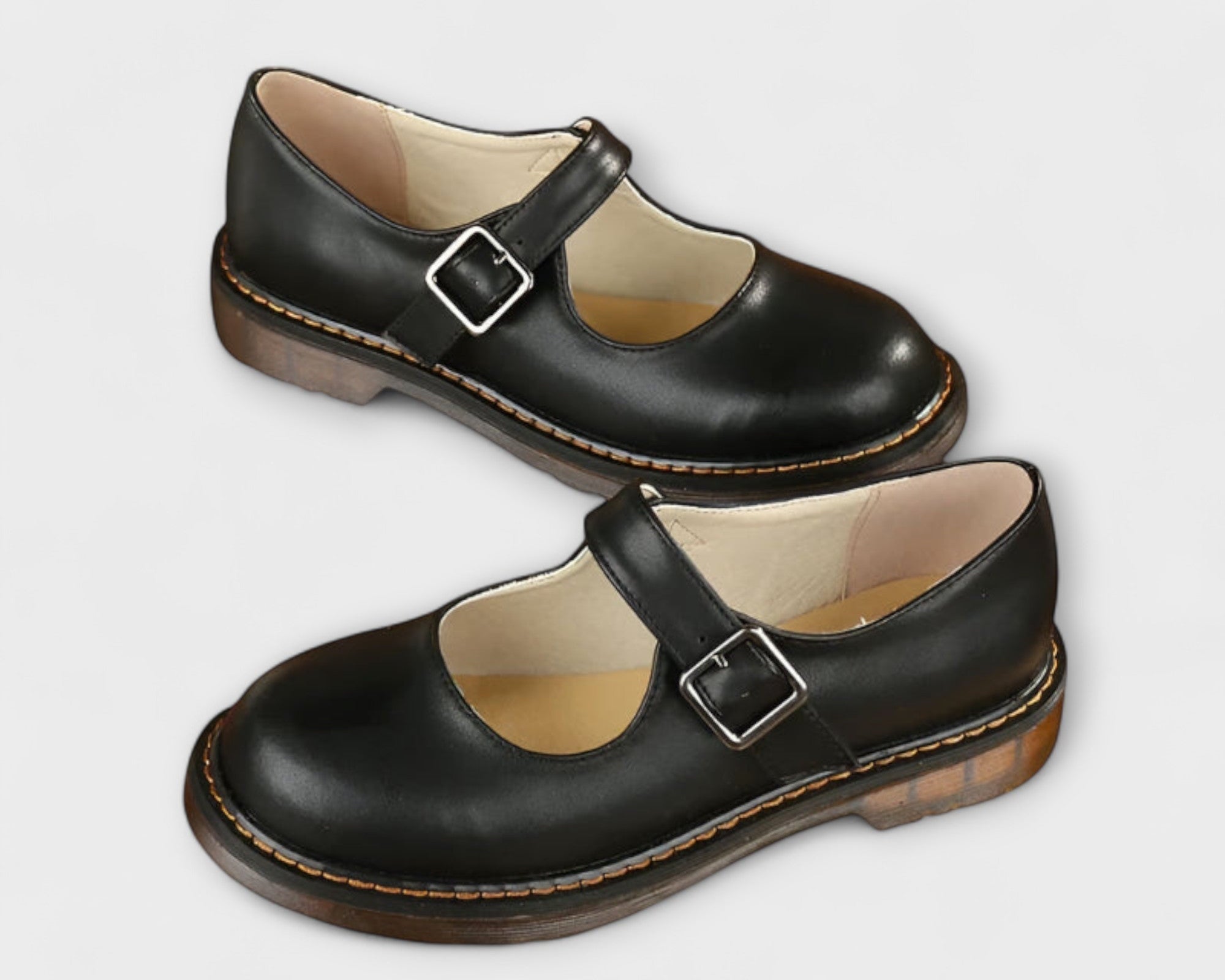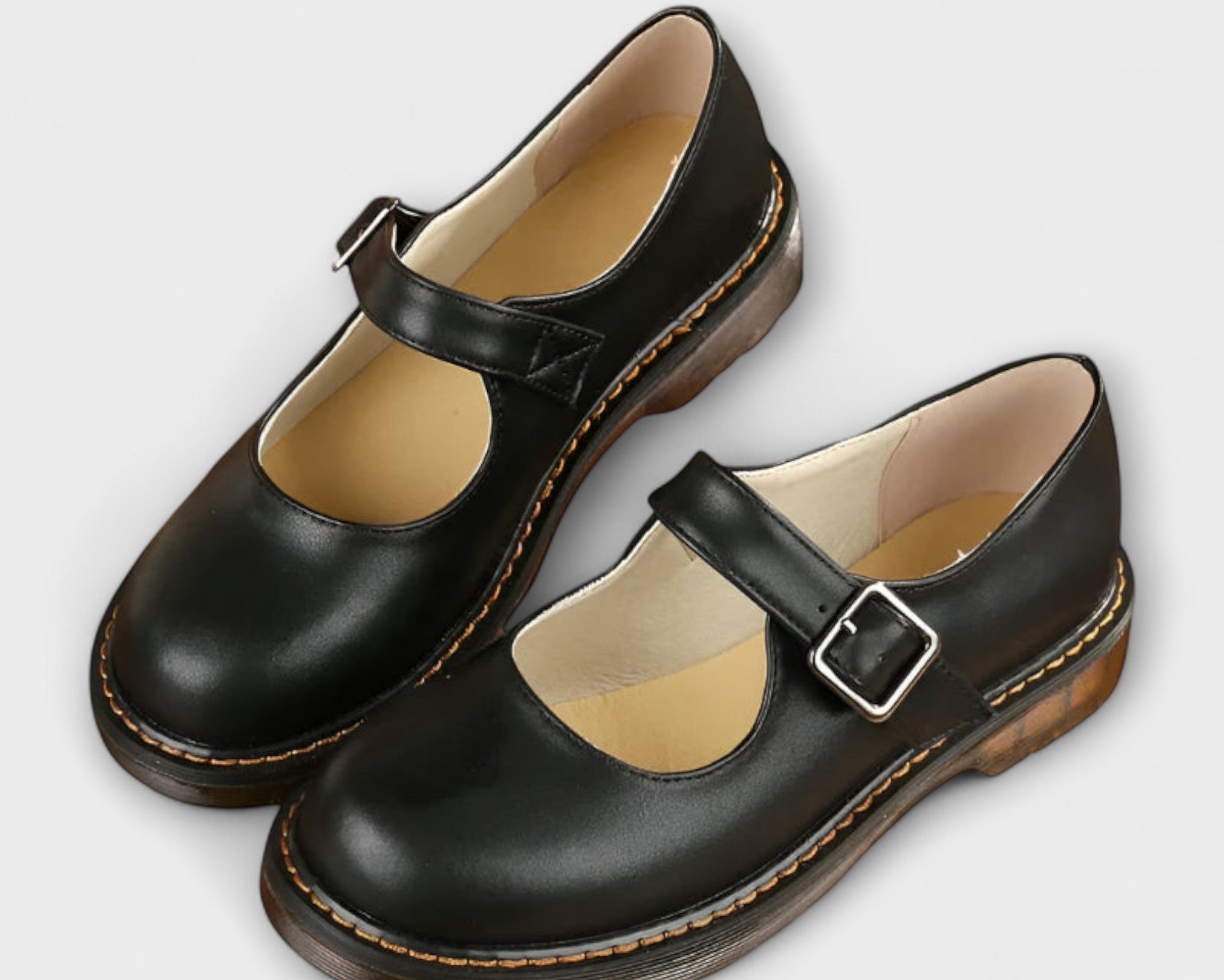 Dámské vintage boty Mary Jane – Klasické kožené boty sáskem a komfortní podrážkou