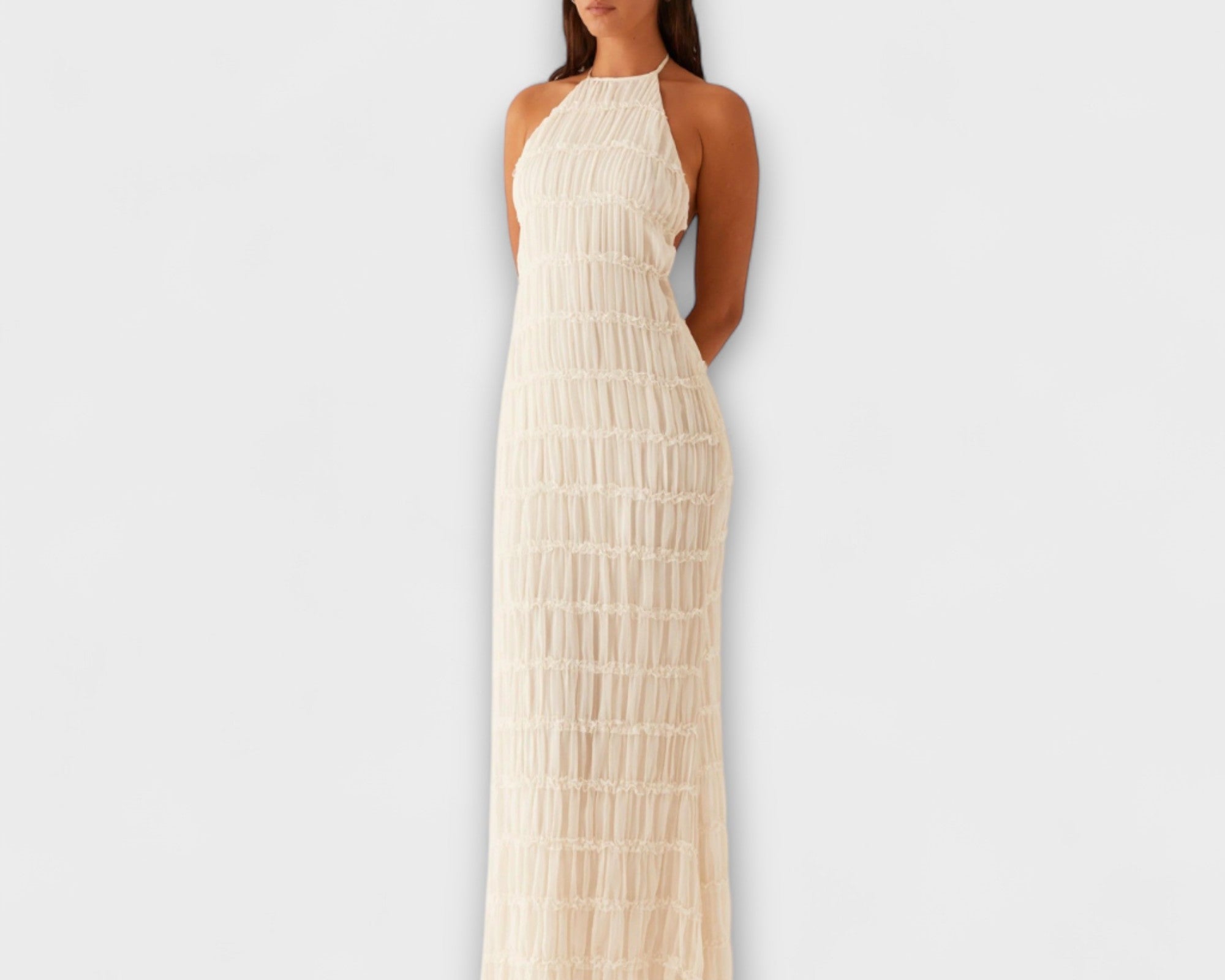 Adeline - Dlouhé šaty s ohlávkou výstřihem