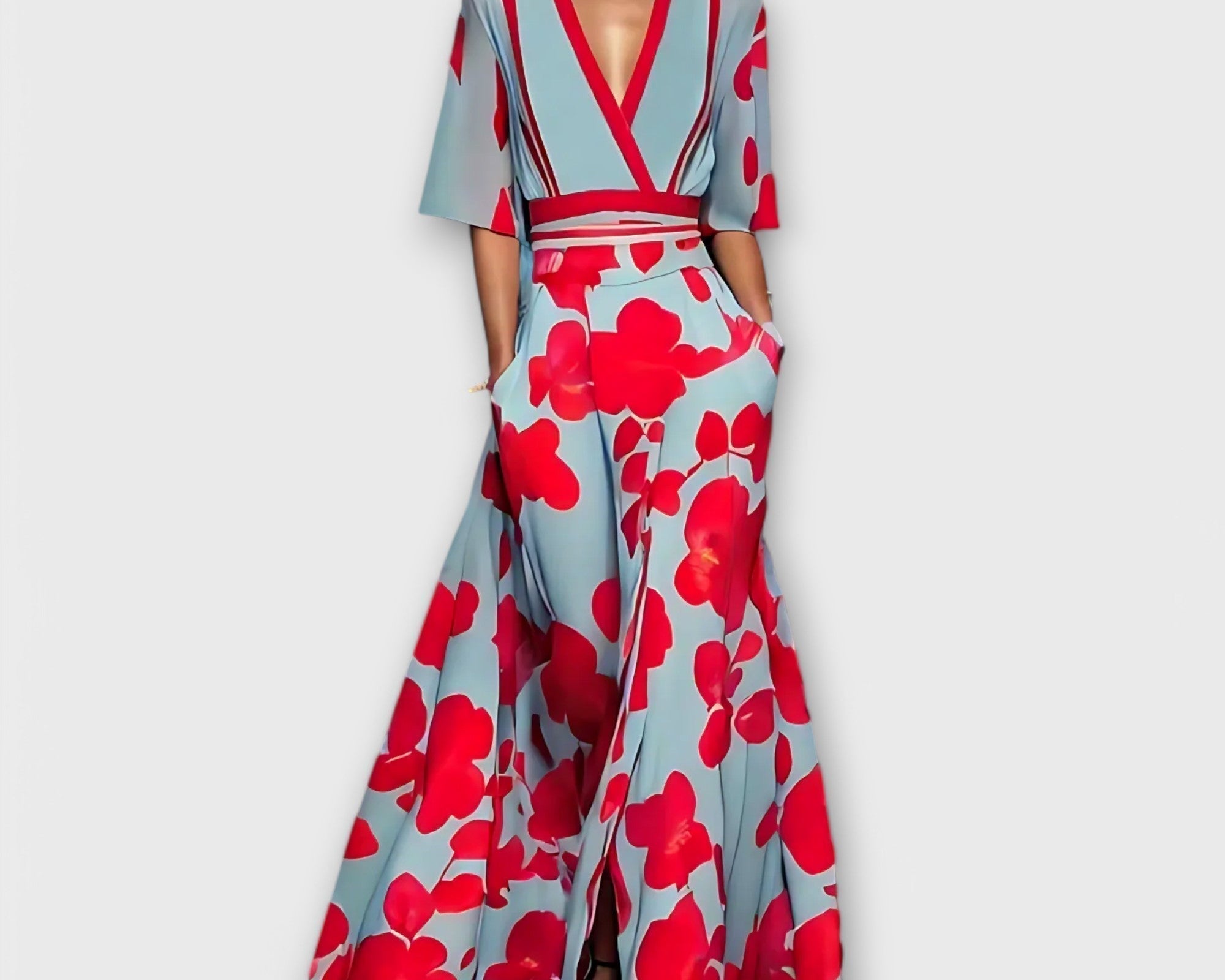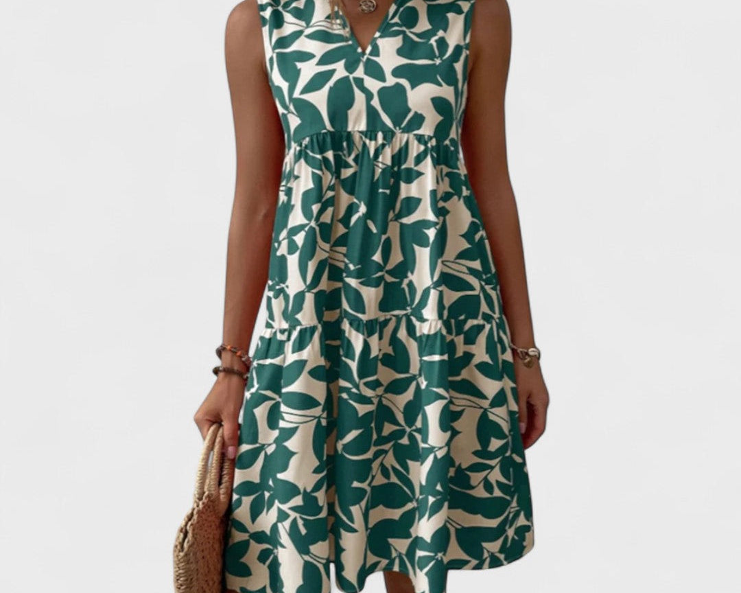 Marina - Vintage Boho Květnatý V-výstřih Šaty