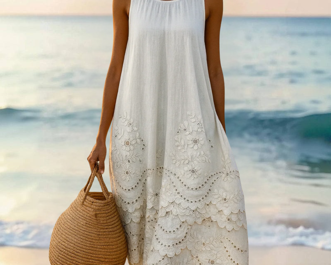 Kaya - Maxi šaty s výstřihem a balónovými rukávy