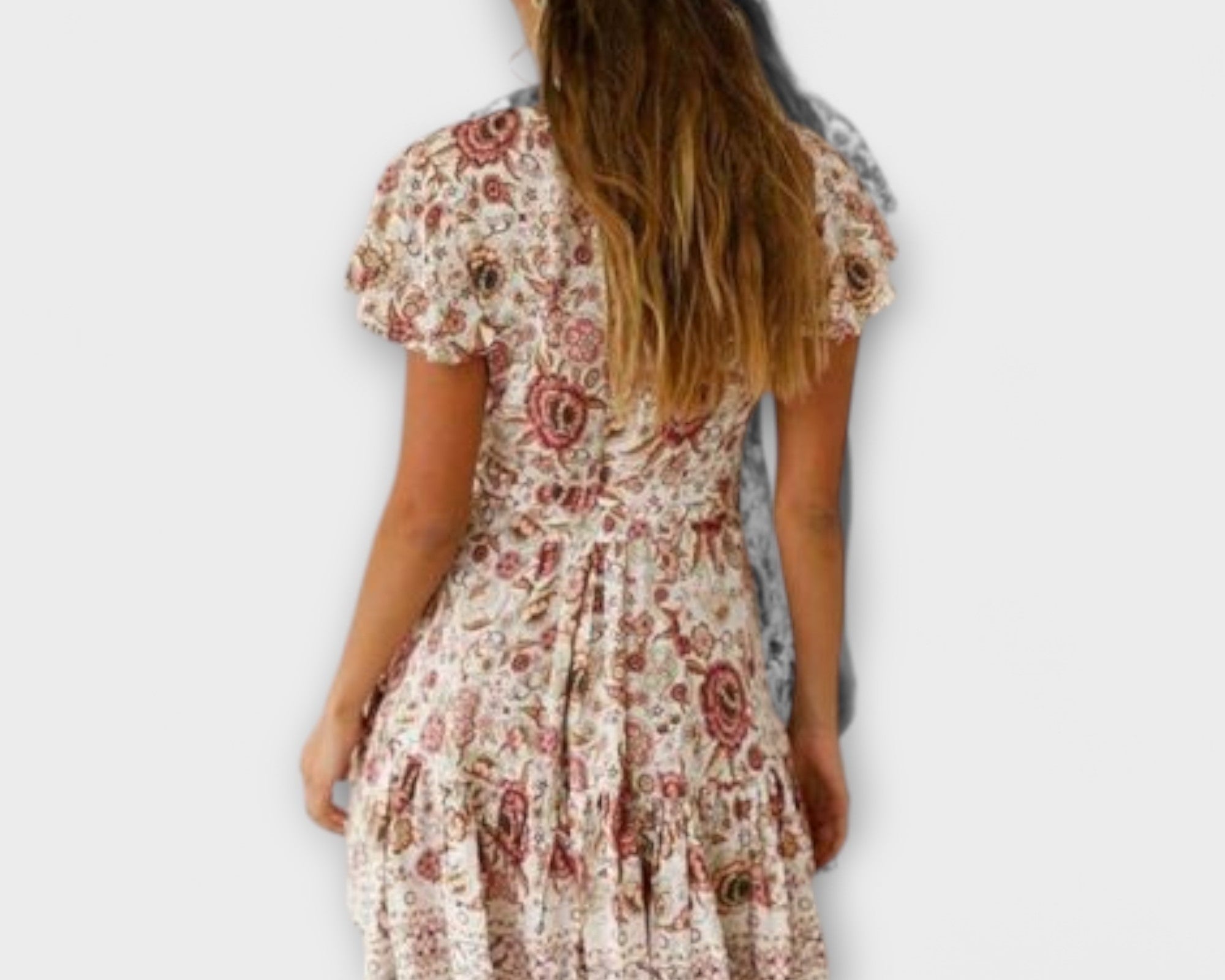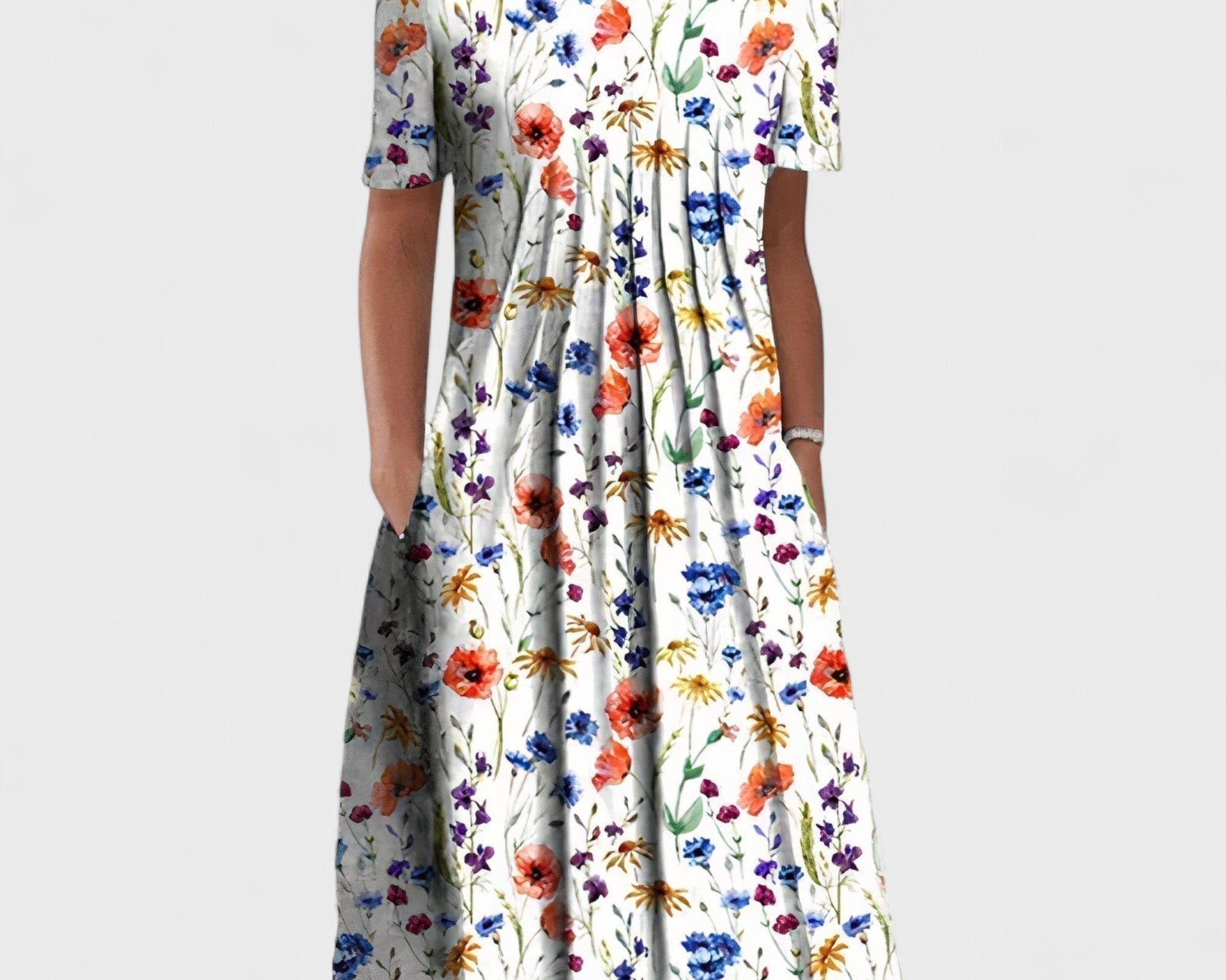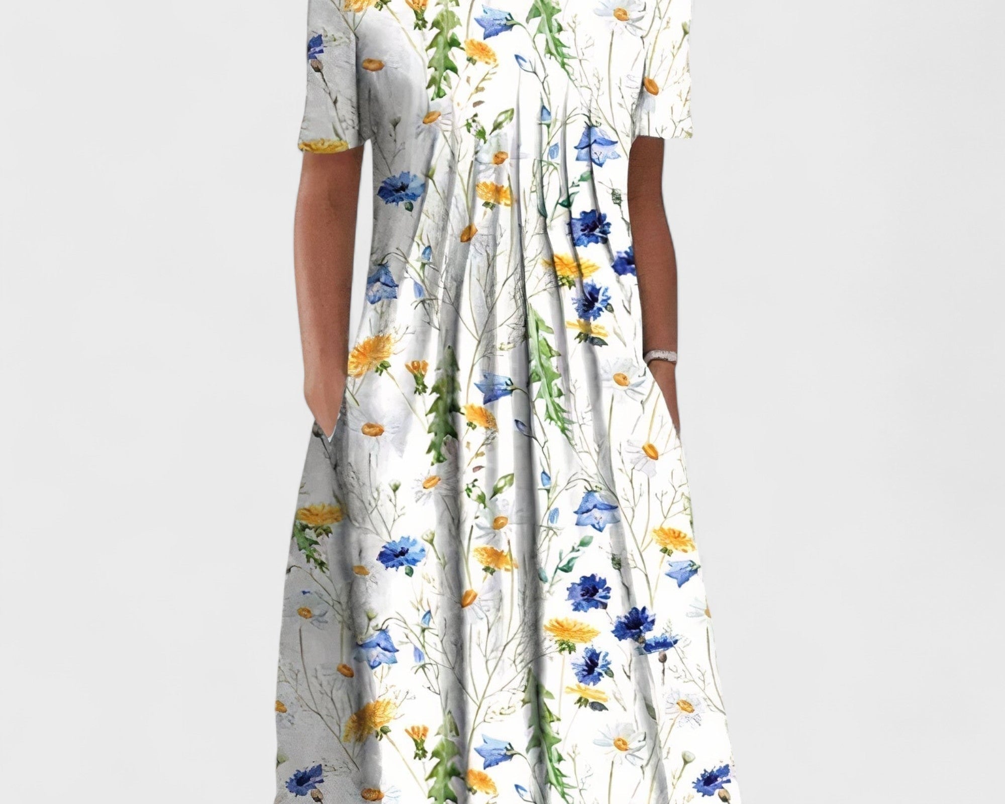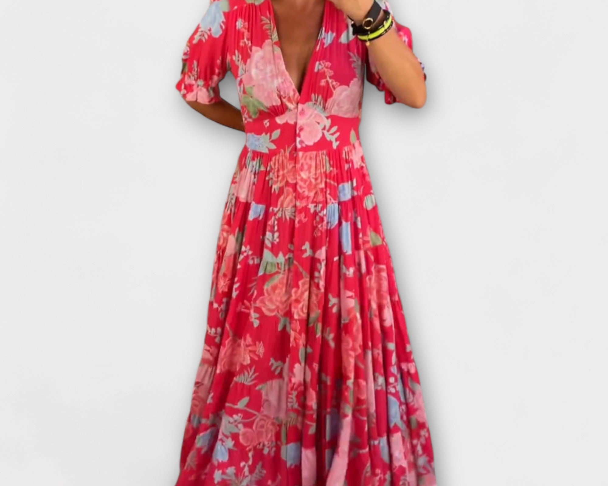 Catrisa - Kvetinový vzor V-krk šaty s kapsami