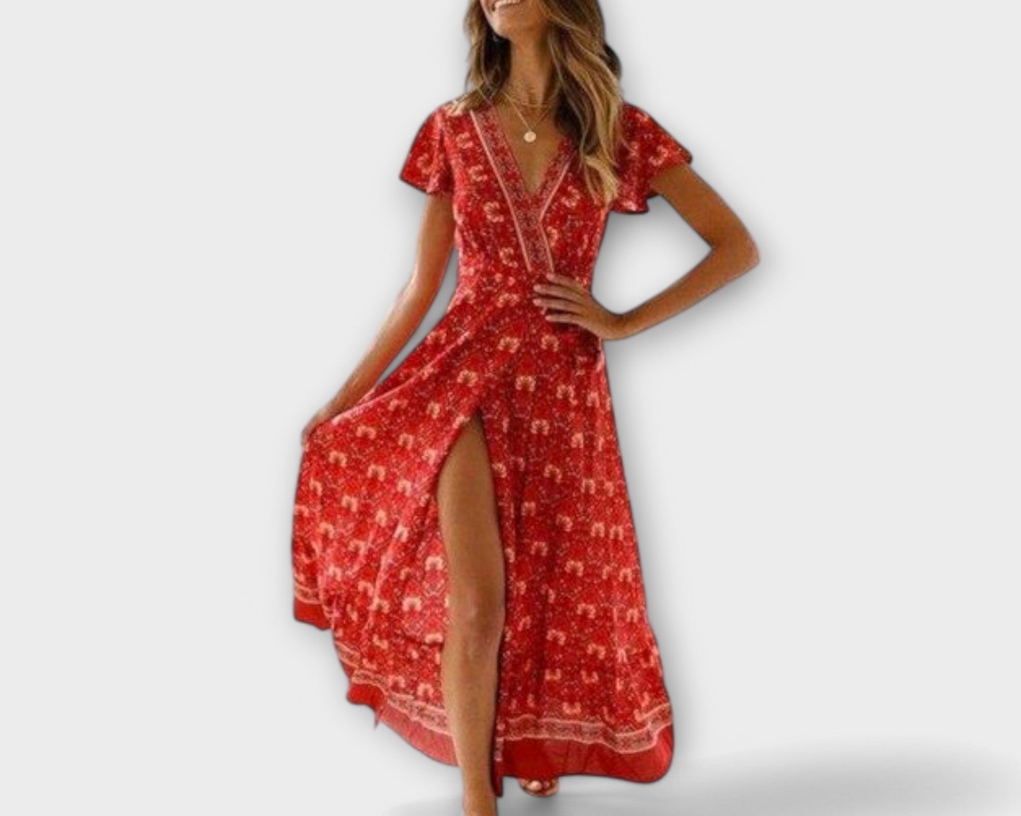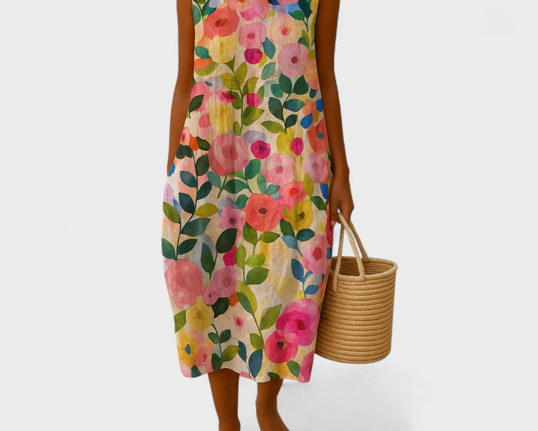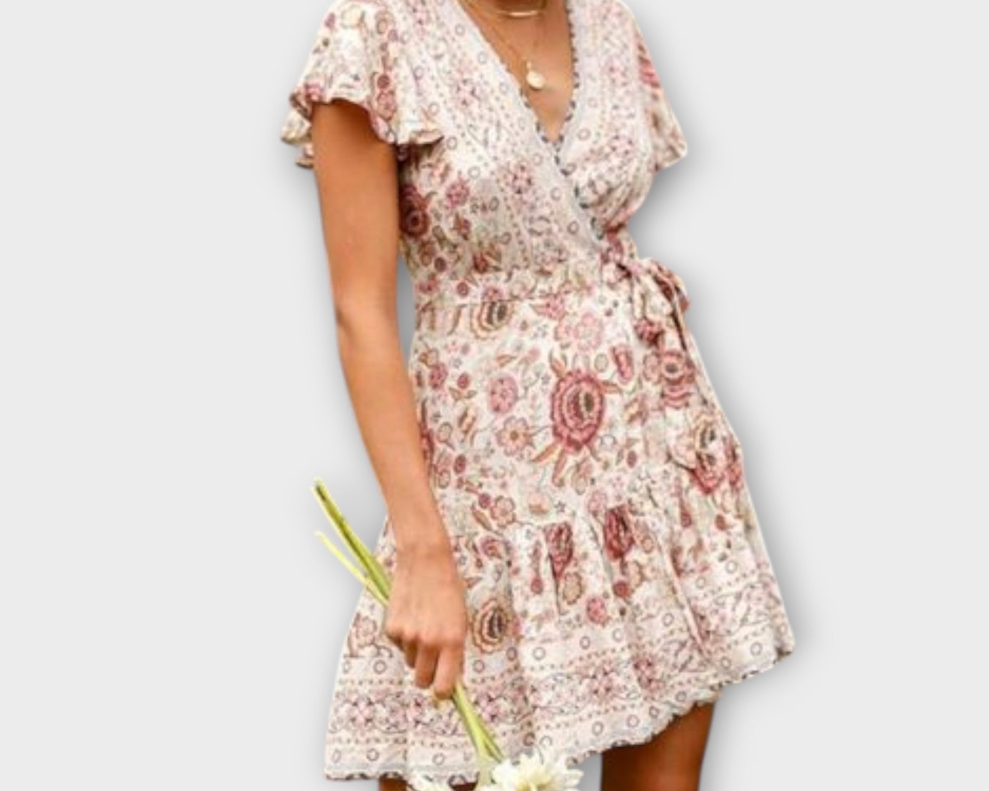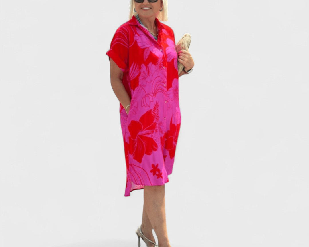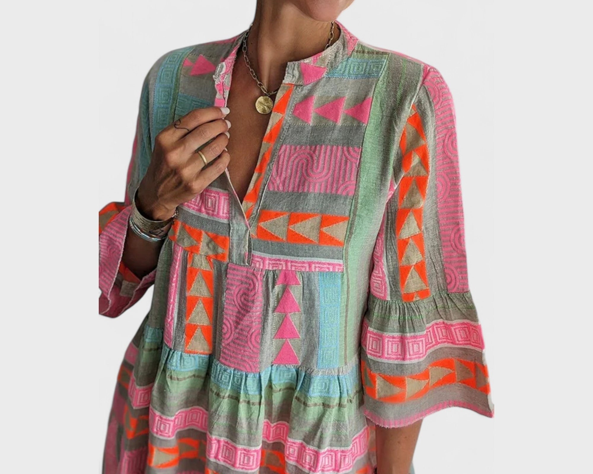 Catrisa - Kvetinový vzor V-krk šaty s kapsami