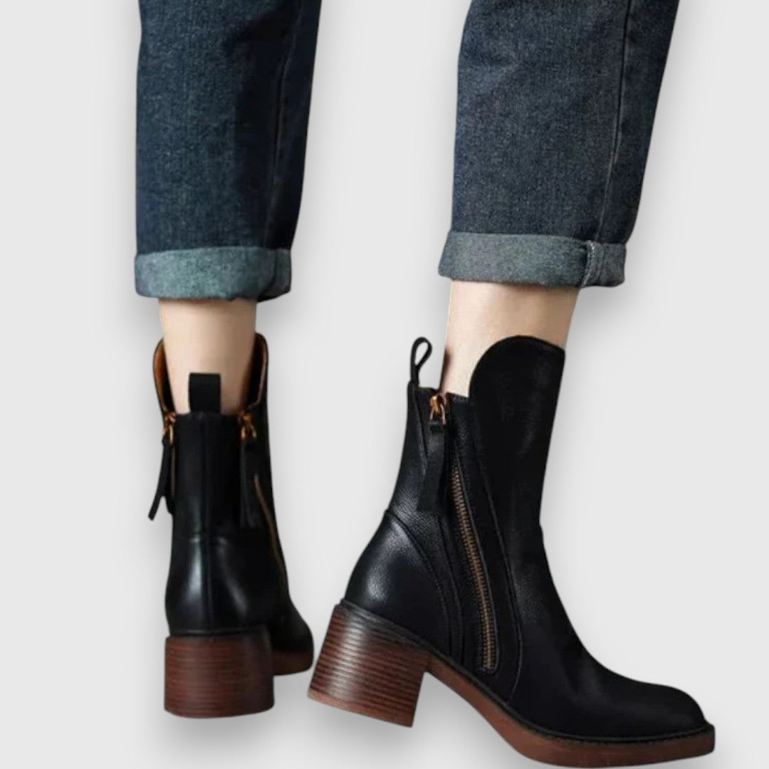Garciel – Černé kožené kotníkové boty s pohodlným podpatkem, elegantní a nadčasové