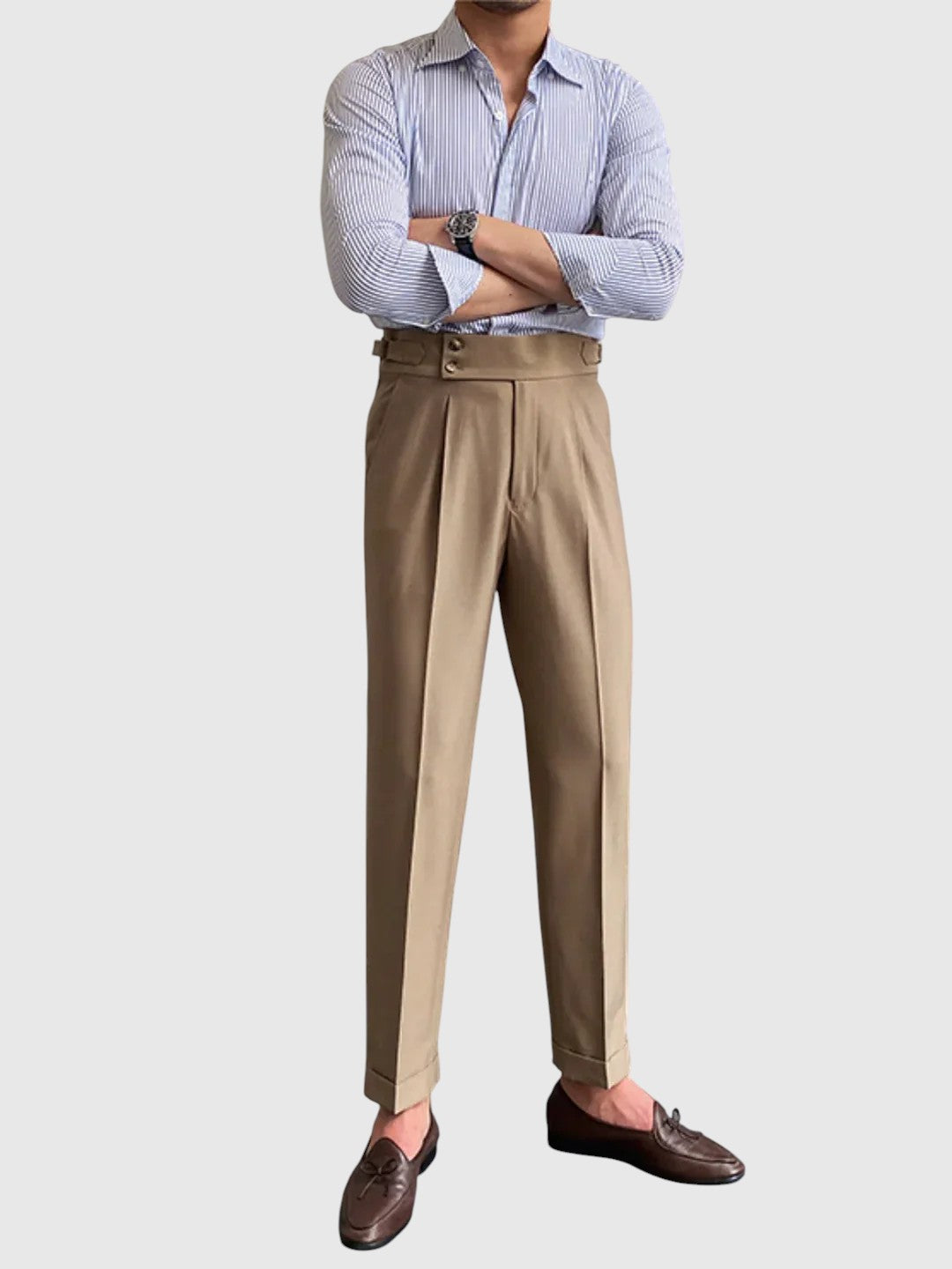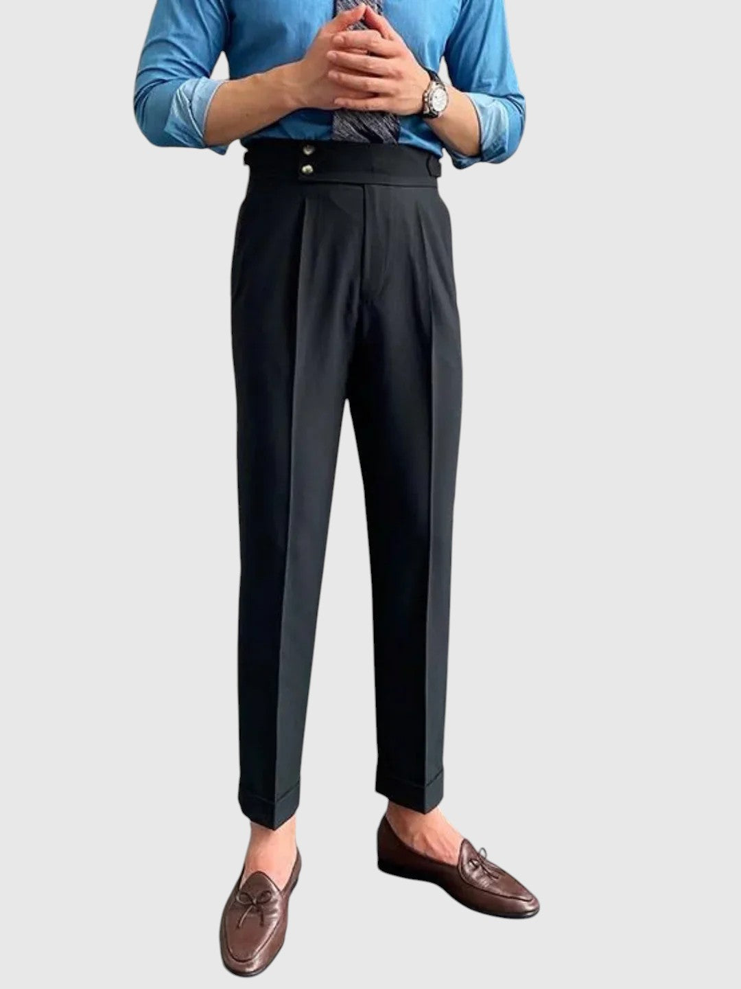 Kalhoty Moritz Vintage byly navrženy pro muže, kteří ocení styl inspirovaný dědictvím s rafinovaným nádechem. Vyrobeny z vysoce kvalitní tkaniny, nabízejí pohodlný, ale strukturovaný střih - ideální pro elegantní ležérní vzhled, sofistikované každodenní oblečení nebo soupravy inspirované vintage stylem.